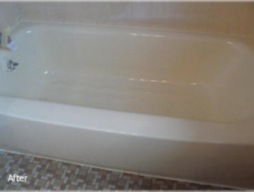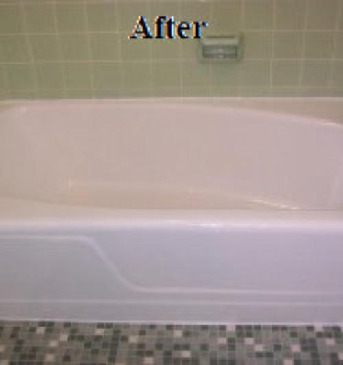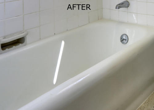 surface before the tub reglazing. After the new coat is applied, in 24 hours
